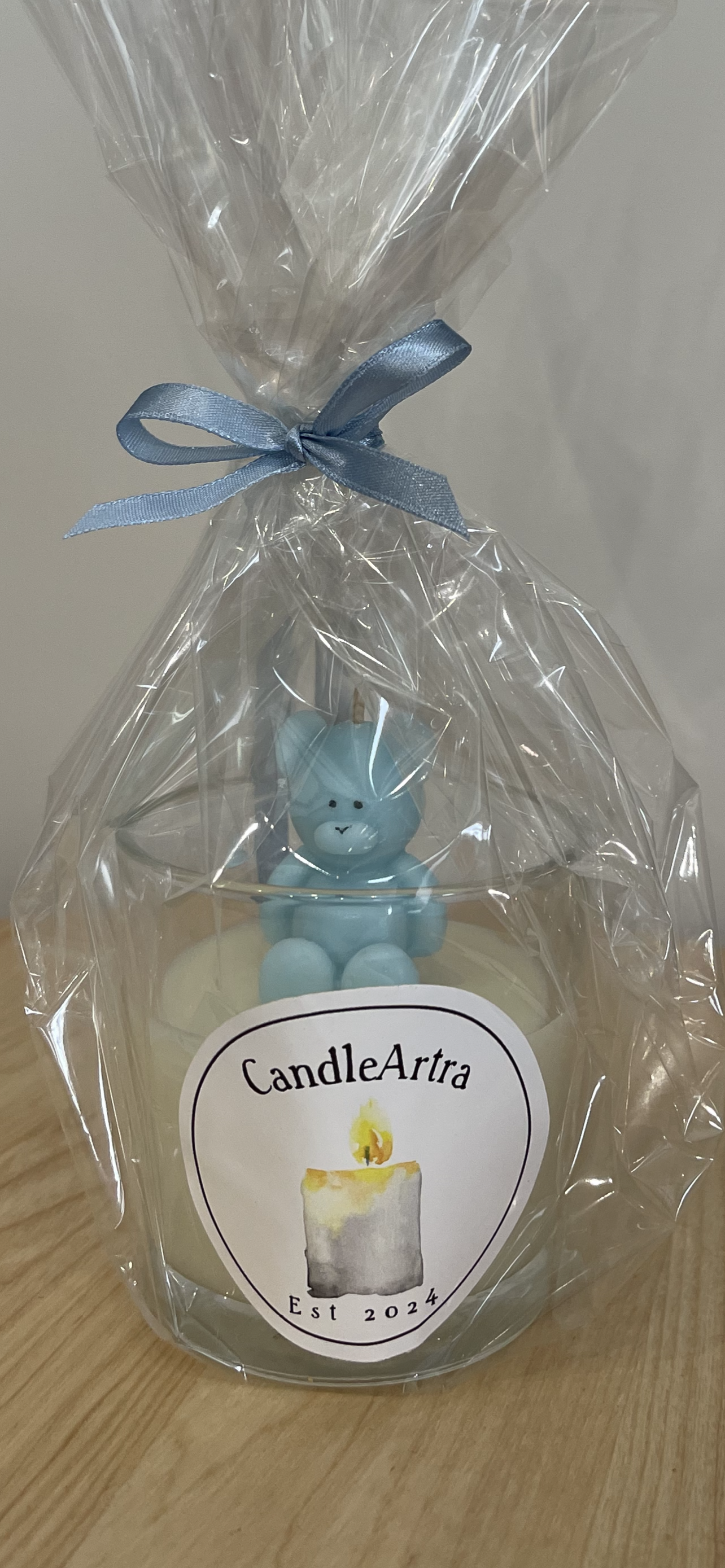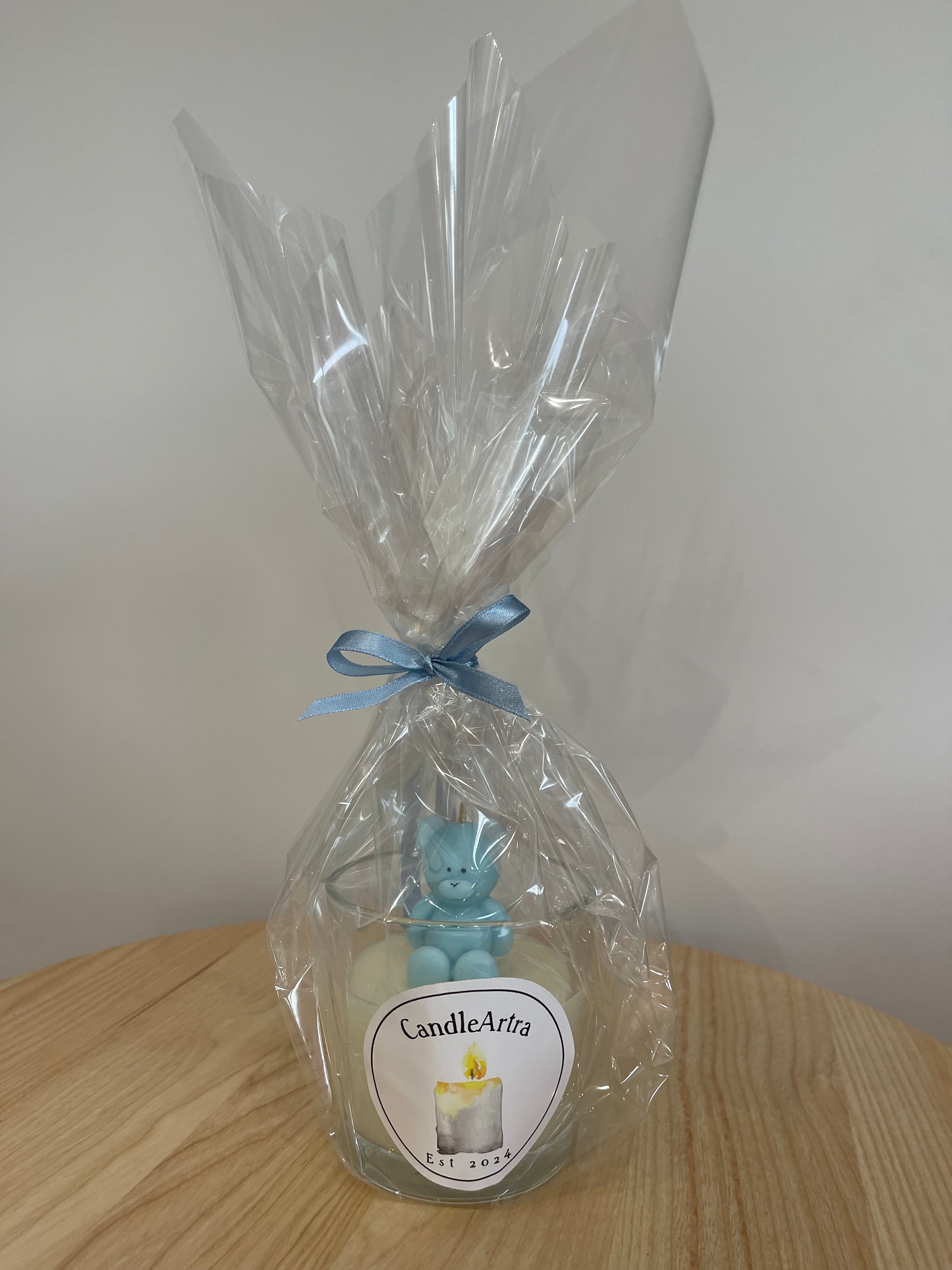 This exquisite teddy bear candle is the perfect baby shower party favour. Personalise it with your desired theme colours and scent. Crafted with top-quality soy wax, this teddy bear can stand alone or onto of a candle in a jar. It also makes a thoughtful gift for teachers and educators.