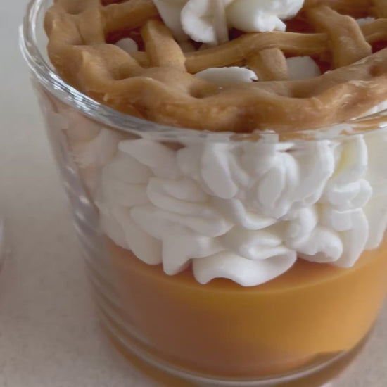One of a kind pumpkin pie! An inviting blend of pumpkin and spices. Buttery sweet base notes are intertwined with a heart of cinnamon and nutmeg. Topped with a lattice pie crust only available at Candle Artra!
